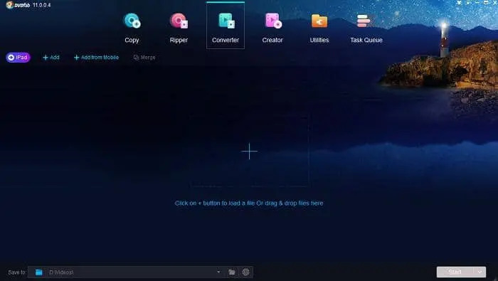 2. 通過點擊 "+"按鈕或使用拖放方法添加你要轉檔的視頻。DVDFab 11還允許用戶直接從他們的移動設備中添加視頻,所以如果你想嘗試這個新選項,請點擊從移動設備中添加按鈕。