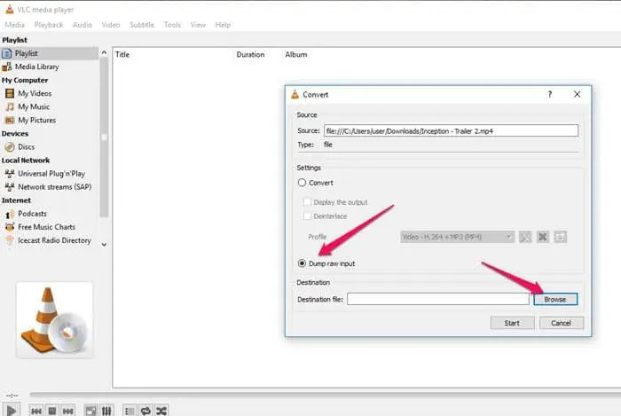 選擇Dump Raw輸入,然後點擊 "流覽",給出名稱和位置。只要給任何name.flv,然後點擊“開始”。