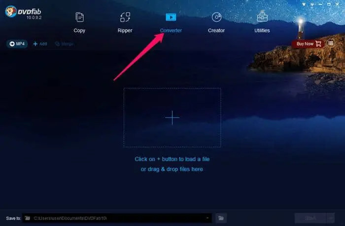 點擊轉檔器,然後找到MP4視頻檔案,並將其加載到軟體。