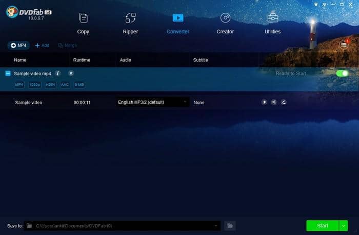 雖然名字叫 "視頻轉檔器",但用DVDFab Video Converter工具也是一個有能力的MP4到MP3音頻轉檔器。它是一個所有類型的視頻和音頻轉檔的工具,並配備了先進的工具和視頻編輯器,使你的輸出檔案的專業品質變化。