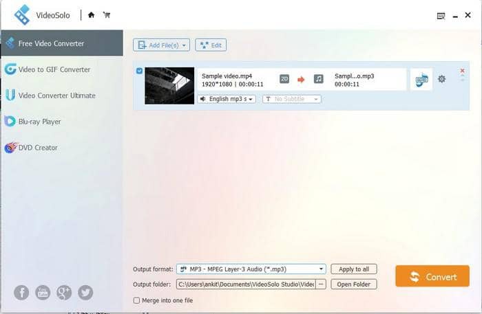 Videosolo免費視頻轉檔器是一個非常強大的工具來做視頻和音頻轉檔。支持超過300種格式,以及明確支持設備類型,Videosolo免費視頻轉檔器可以在瞬間從MP4抓取音頻。你可以做批量轉檔,將所有的輸入檔案合併成一個輸出檔案,並通過一系列易於使用的編輯工具編輯你的視頻或音頻。