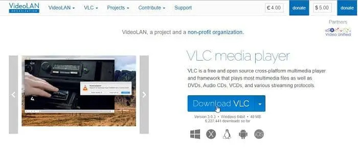 第1步:打開VideoLAN的網站,下載VLC媒體播放器。請確保仔細流覽整個安裝過程,通常會發生安裝任何臃腫的軟體。因此,如何用VLC將MKV安全轉檔為MP4是值得關注的。