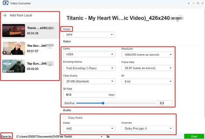 設置輸出視頻格式為 "MP4"。然後使用下麵的選項自定義您的視頻和音頻。如何將MKV檔案轉檔為MP4 Windows 10且不損失品質?DVDFab Toolkit是另一個選擇。