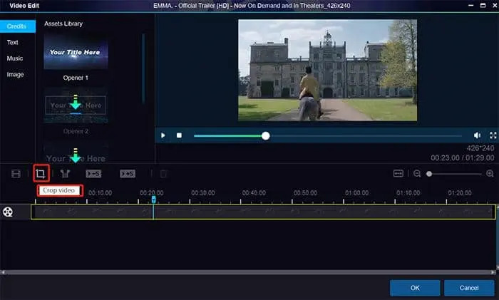 例如,點擊 "裁剪 "按鈕,設置長寬比,如下圖所示。
