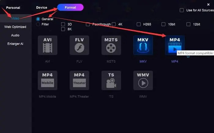 第2步:從內置配置檔案庫中選擇 "MP4 "格式