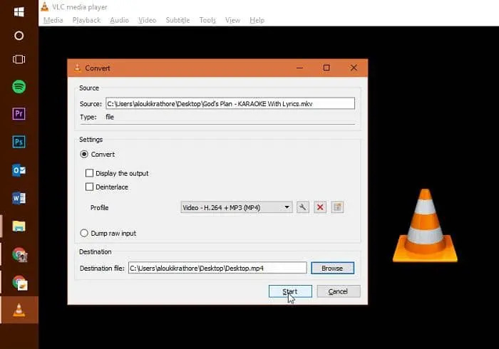 第5步:最後,選擇你的目標檔案夾或位置。點擊 "開始",時間軸將顯示MKV到MP4轉檔的進度。一旦完成,你可以只在VLC媒體播放器測試品質。也許VLC也有能力告訴你如何將MKV轉檔為MP4而不損失品質。
