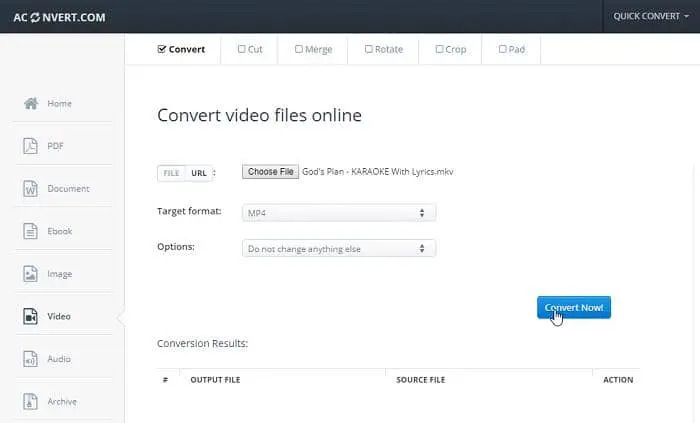 如何免費將MKV轉檔為MP4?這裏有一個線上工具,可以幫助你。不說別的,很多網站都提供這個功能,但Aconvert.com是最好的了。你可以用它來轉檔MKV到MP4,它支持大量的視頻格式。除了轉檔視頻檔案格式,你也可以做基本的編輯工作。通過剪輯,合併視頻,旋轉和裁剪,根據您的需求,當你學習如何轉檔MKV到MP4線上。