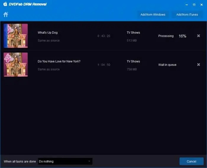 - DRM被刪除後,你可以將這些檔案轉移到非蘋果設備,或可以使用DVDFab Video Converter,將它們轉檔為任何其他視頻格式。
