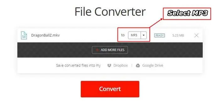 如果你有小的MKV檔案,很容易上傳,那麼你可以使用一個線上MKV到MP3轉檔器。這個線上工具是convertio.co