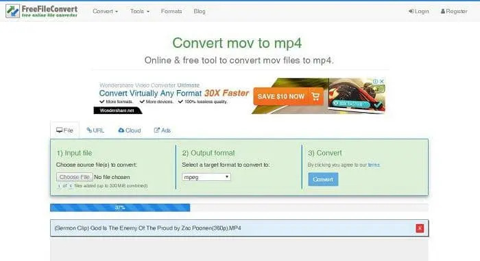 FreeFileConvert是一個線上平臺,可以讓你線上轉檔MOV到MP4。它是免費的,沒有隱藏的費用,不需要任何離線安裝就可以工作。這個線上MOV到MP4轉檔軟體還支援其他媒體格式,另外,你甚至可以用它來存檔檔案。