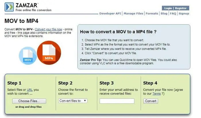 ZamZar線上轉檔軟體可以讓你將視頻從一種格式轉檔為另一種格式;它還支援其他一般媒體格式,而不是視頻。